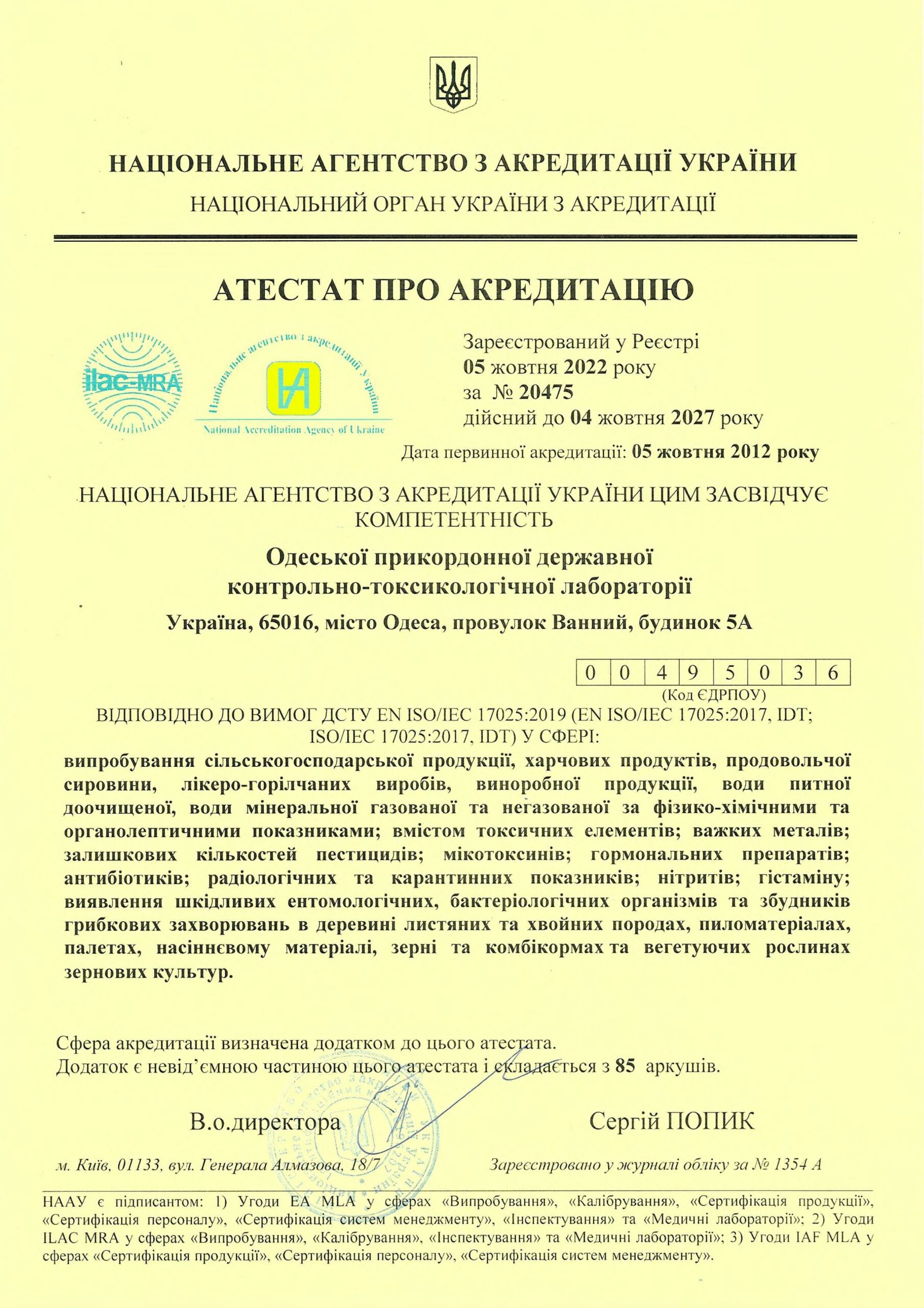 5 жовтня цього року було видано новий Атестат Акредитації терміном діі до жовтня 2027 року.